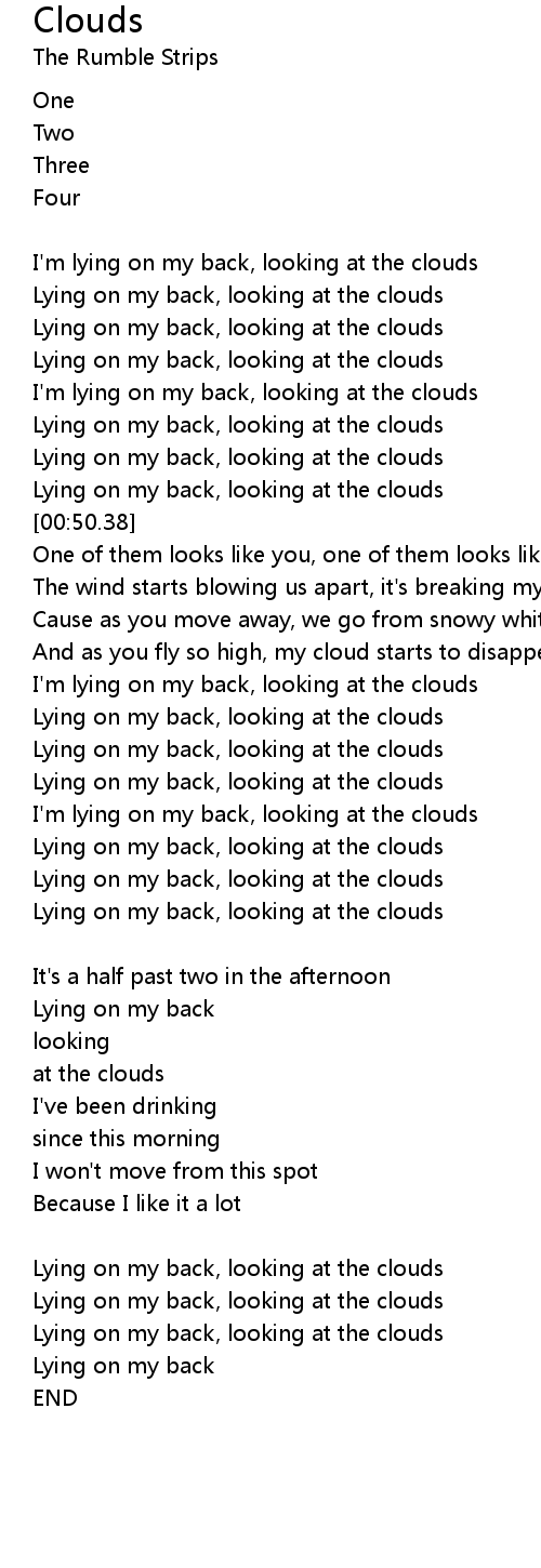 | [00:43.46] | Lying on my back, looking at the clouds |