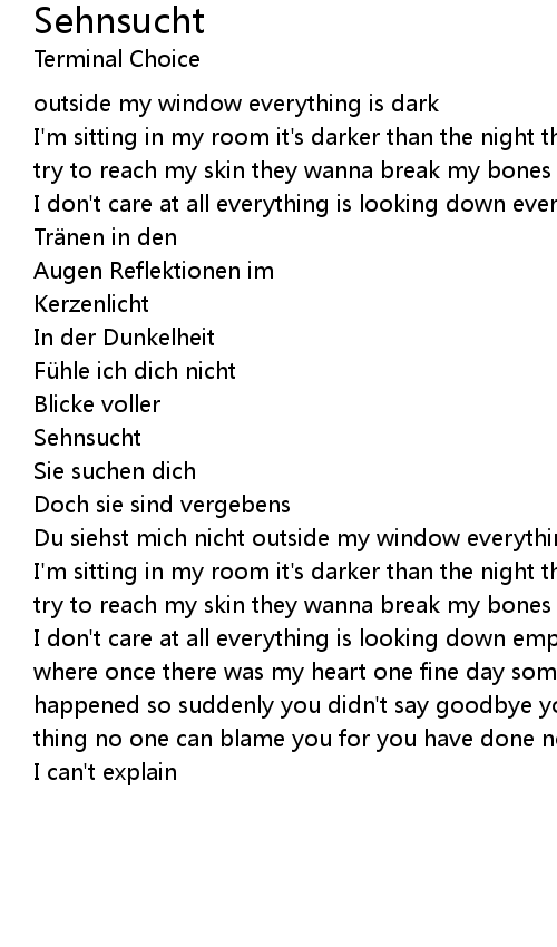 | Du siehst mich nicht outside my window everything is dark | |