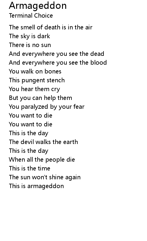 | Song | Armageddon |
