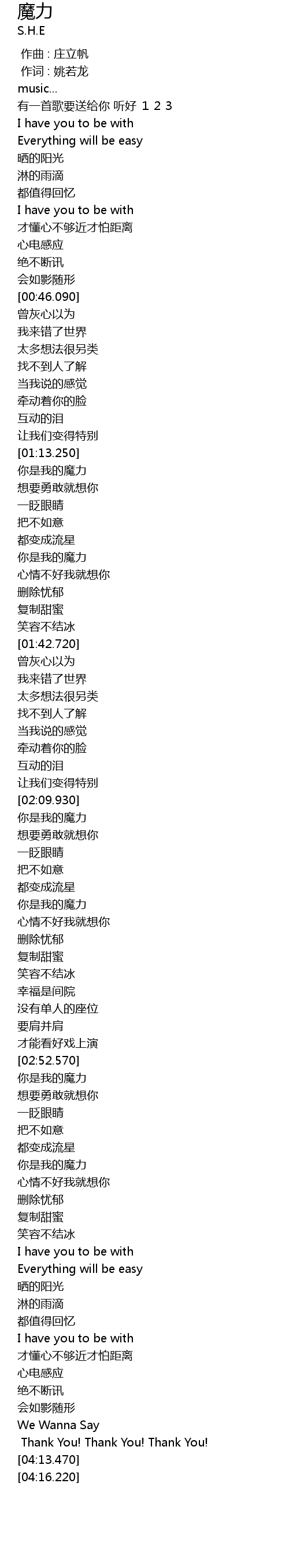| [02:53.050] | 你是我的魔力 |
