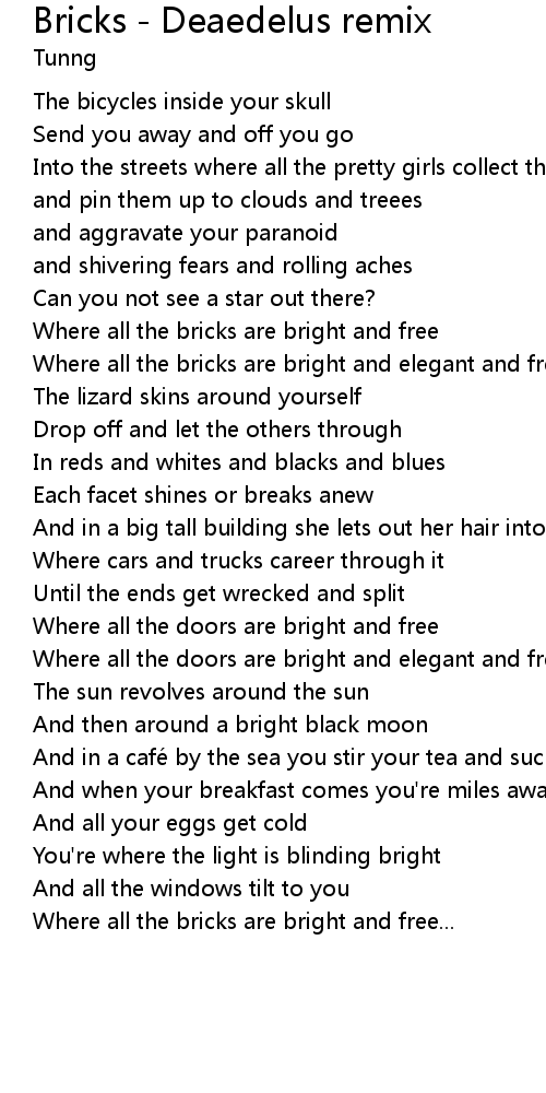 | Where all the bricks are bright and free | |