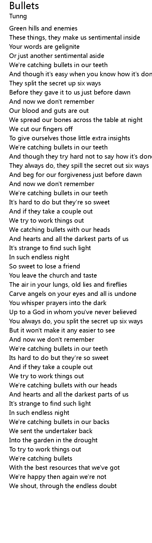 We're catching bullets with our heads |
