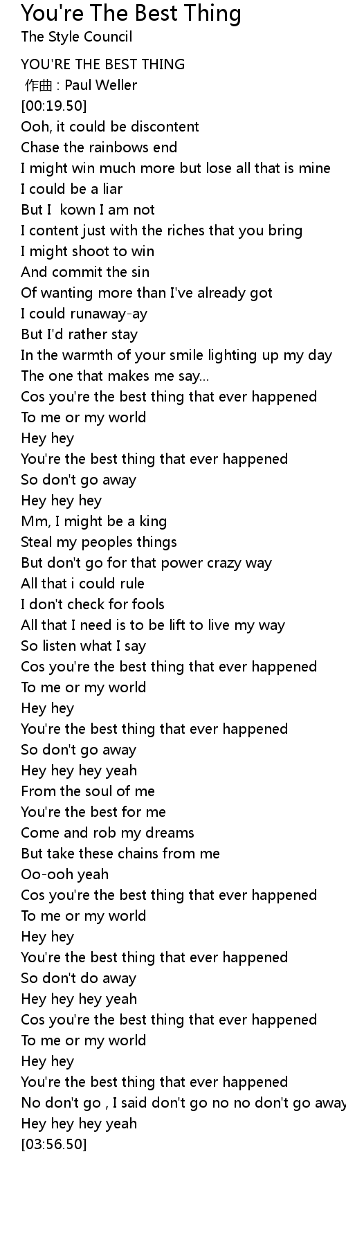 | [02:59.50] | Cos you're the best thing that ever happened |