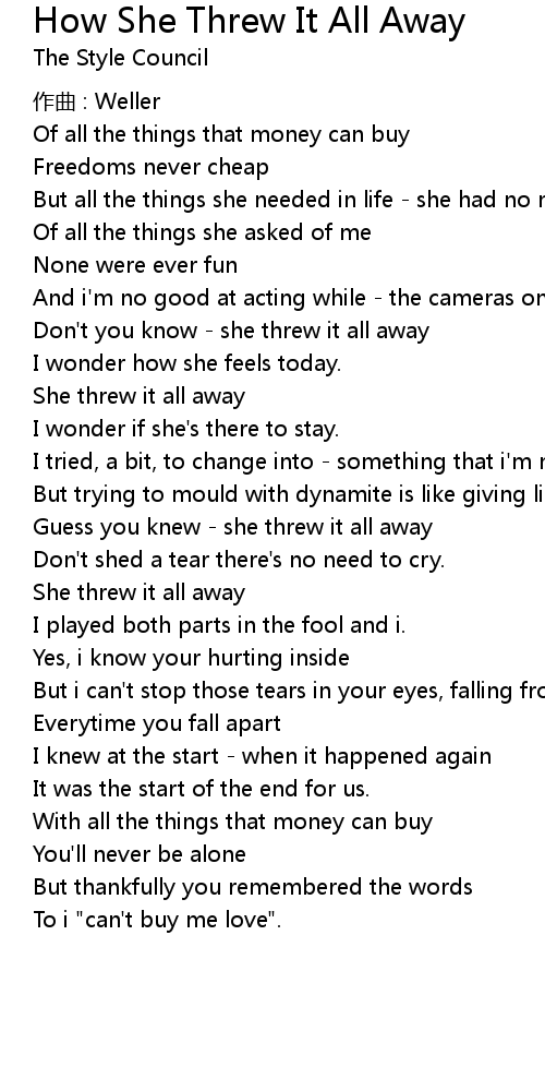 | Don't you know - she threw it all away | |
