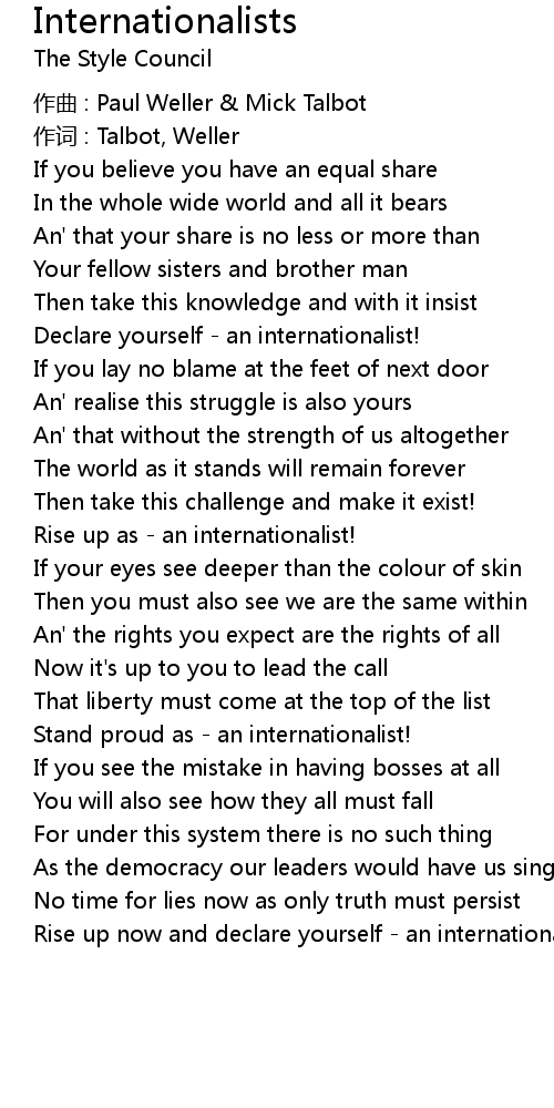 | Rise up now and declare yourself - an internationalist! |