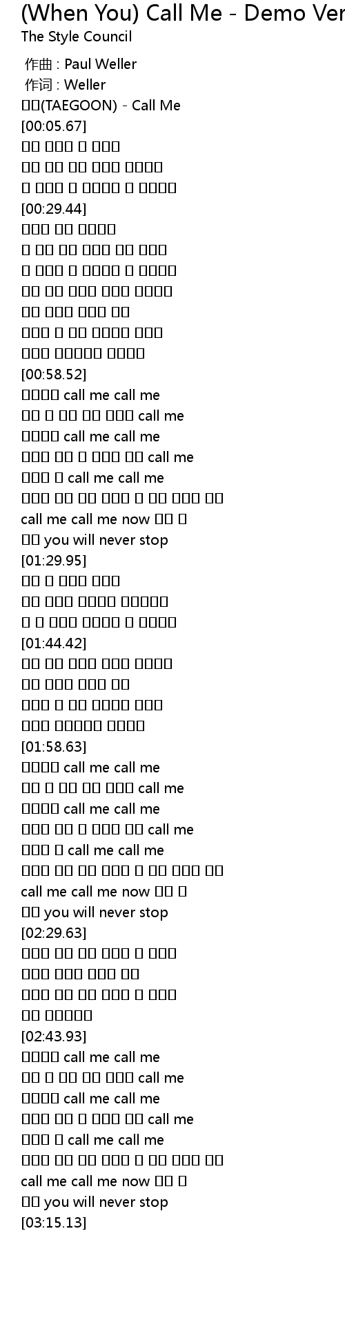 | [00:03.14] | TAEGOON Call Me |