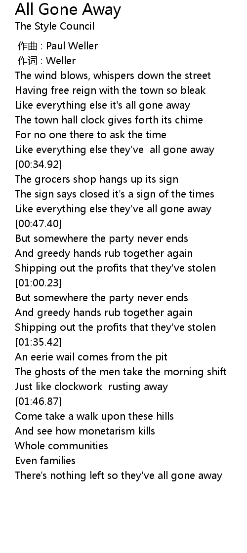 | [00:00.00] | zuò qǔ : Paul Weller |