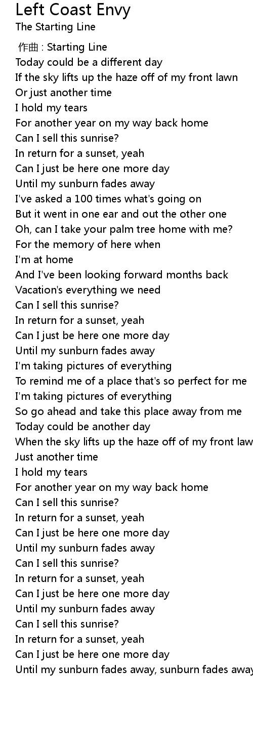 | [04:08.61] | Until my sunburn fades away, sunburn fades away |