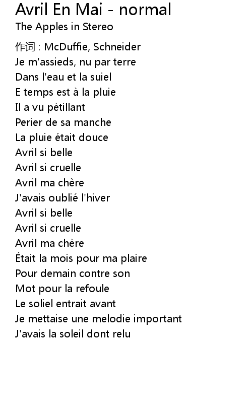| Song | Avril En Mai - normal |