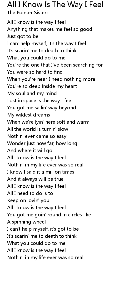 All I know is the way I feel |