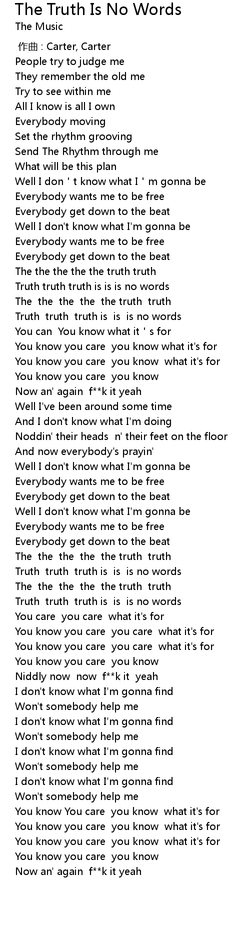 | [00:56.51] | Truth truth truth is is is no words |