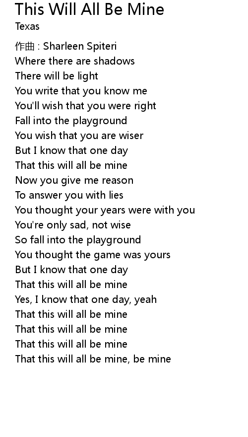| That this will all be mine, be mine |