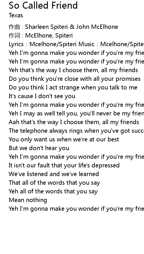 | Yeh I'm gonna make you wonder if you're my friend | |