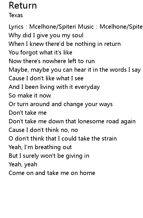 | Come on and take me on home |