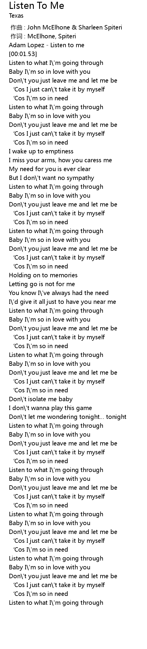 | [01:50.96] | Listen to what I\'m going through |