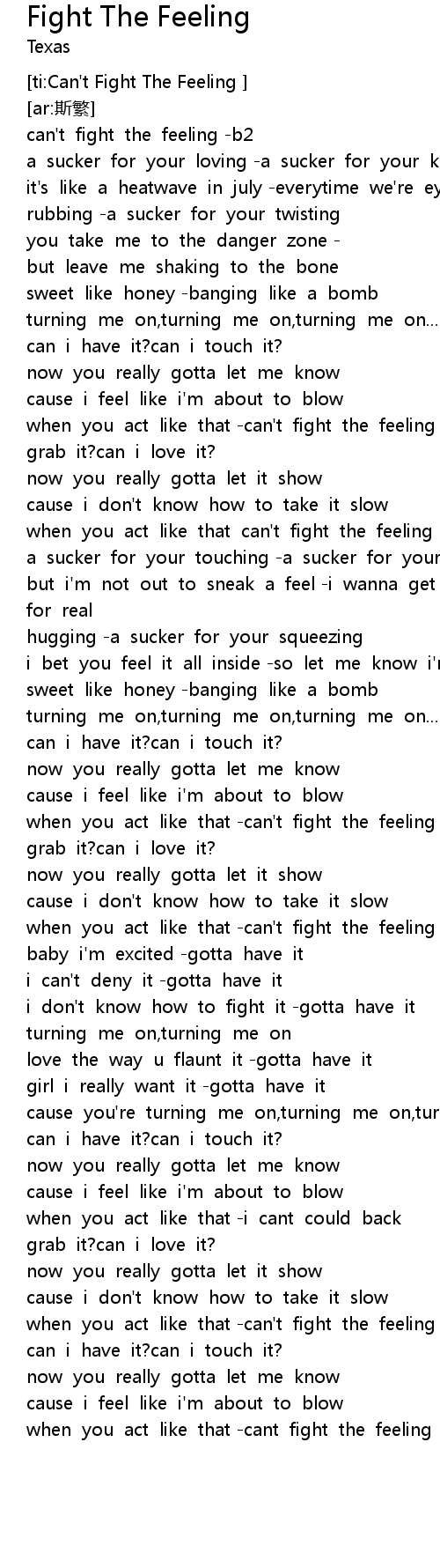 | ti: Can' t Fight The Feeling | |