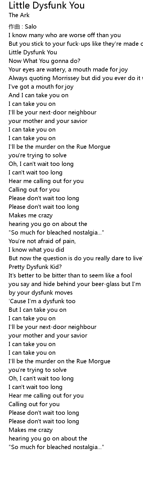 | 'Cause I'm a dysfunk too | |