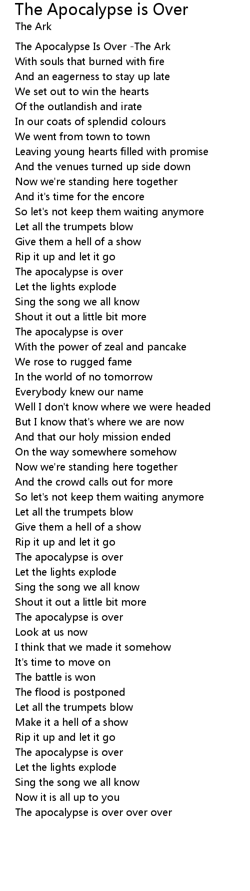 The Apocalypse Is Over -The Ark |