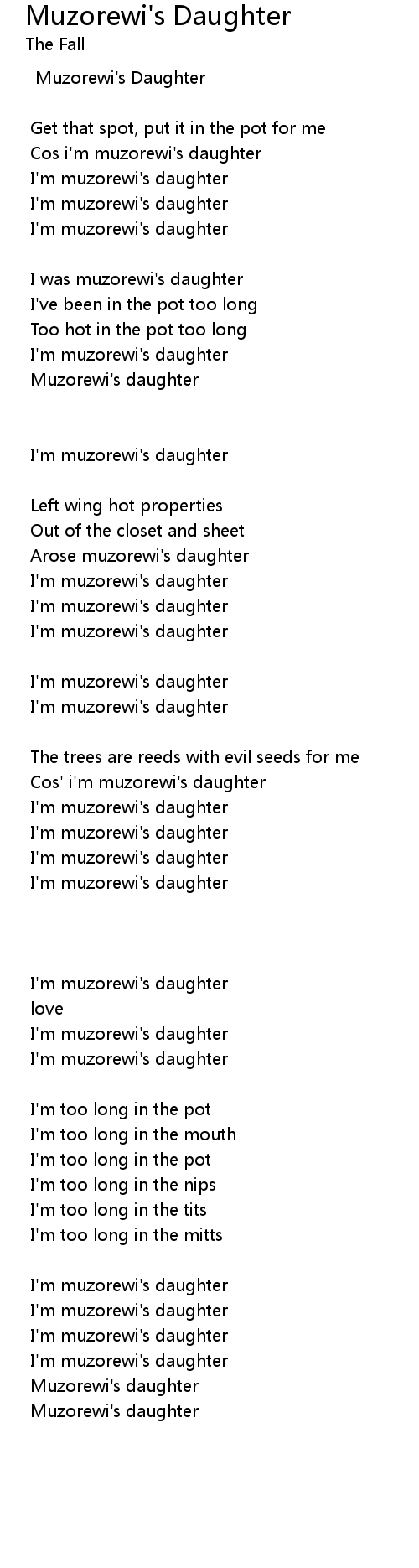 Cos' i'm muzorewi's daughter |