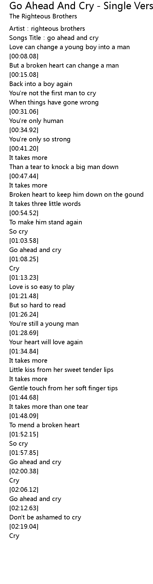 | [00:01.01] | Songs Title: go ahead and cry |