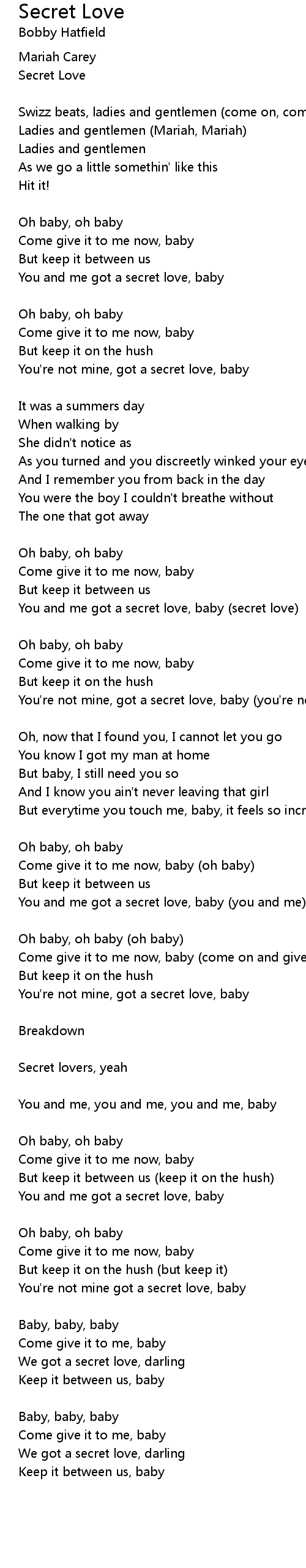 You and me got a secret love, baby (you and me) |