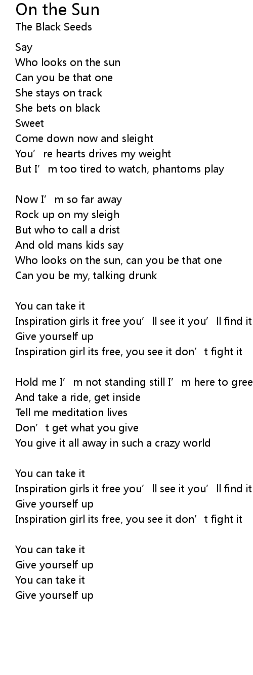 | Inspiration girl its free, you see it don' t fight it | |