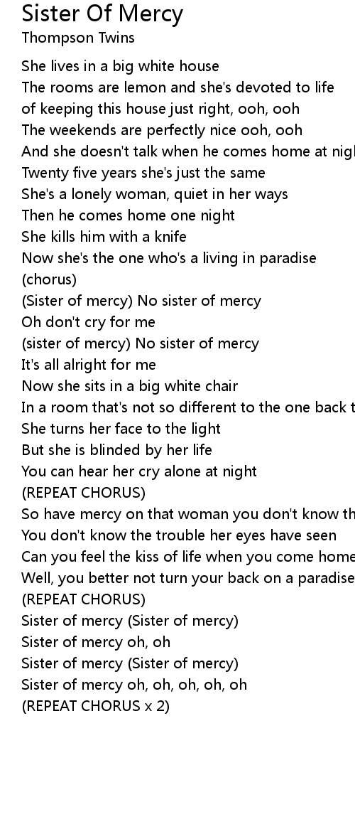 Sister of mercy oh, oh, oh, oh, oh |