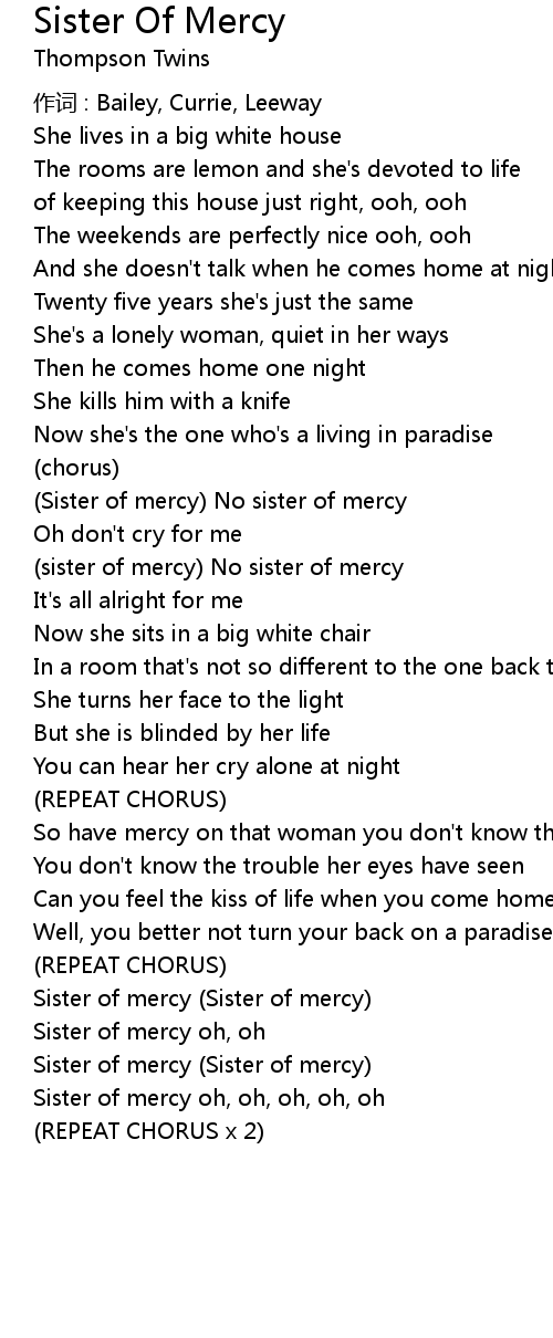 | Sister of mercy oh, oh, oh, oh, oh | |