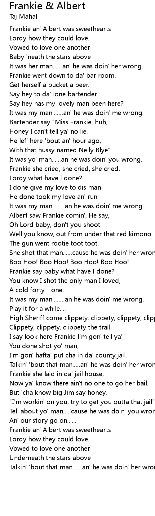 Albert saw Frankie comin', He say, |