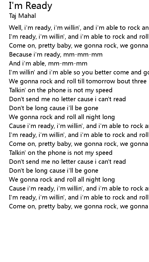 Cause i'm ready, i'm willin', and i'm able to rock and roll all night |