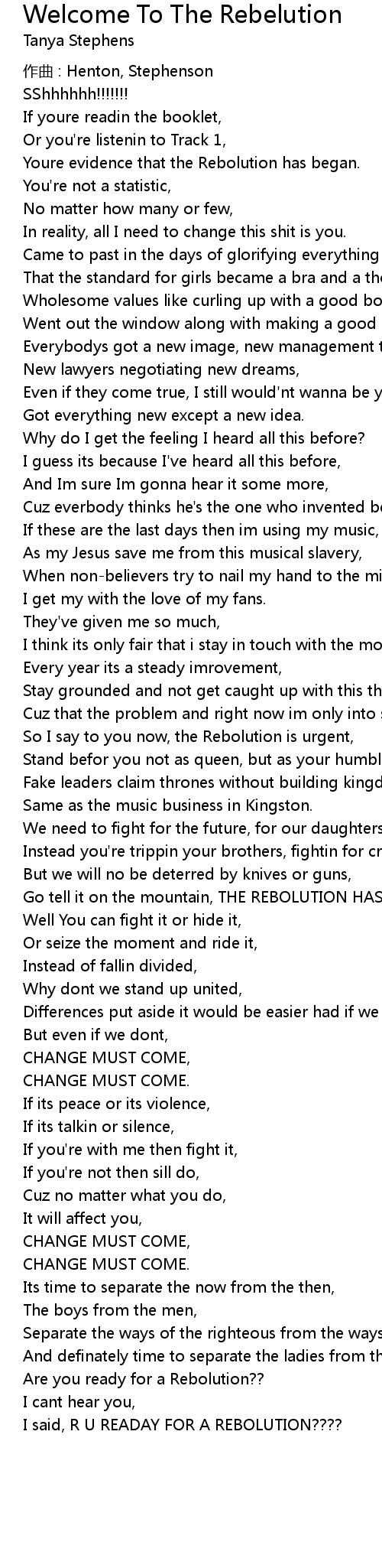 | Song | Welcome To The Rebelution |