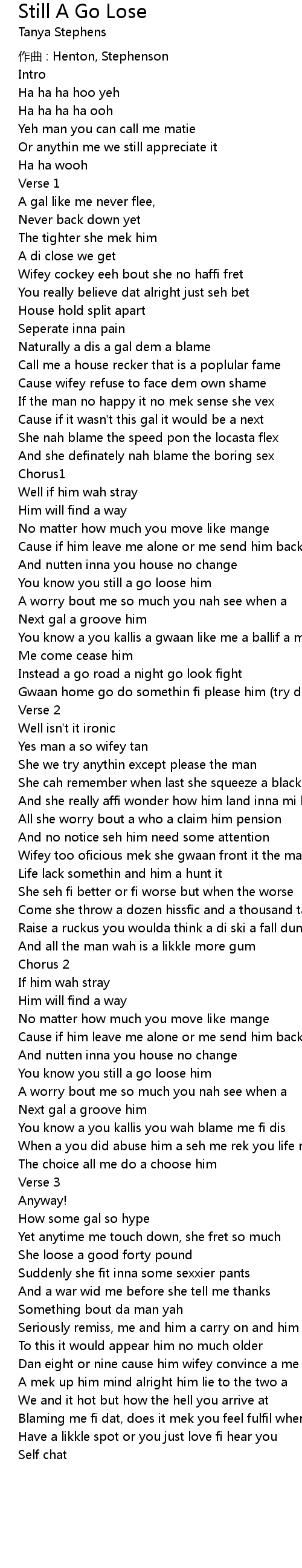 | Gwaan home go do somethin fi please him (try dat no) | |
