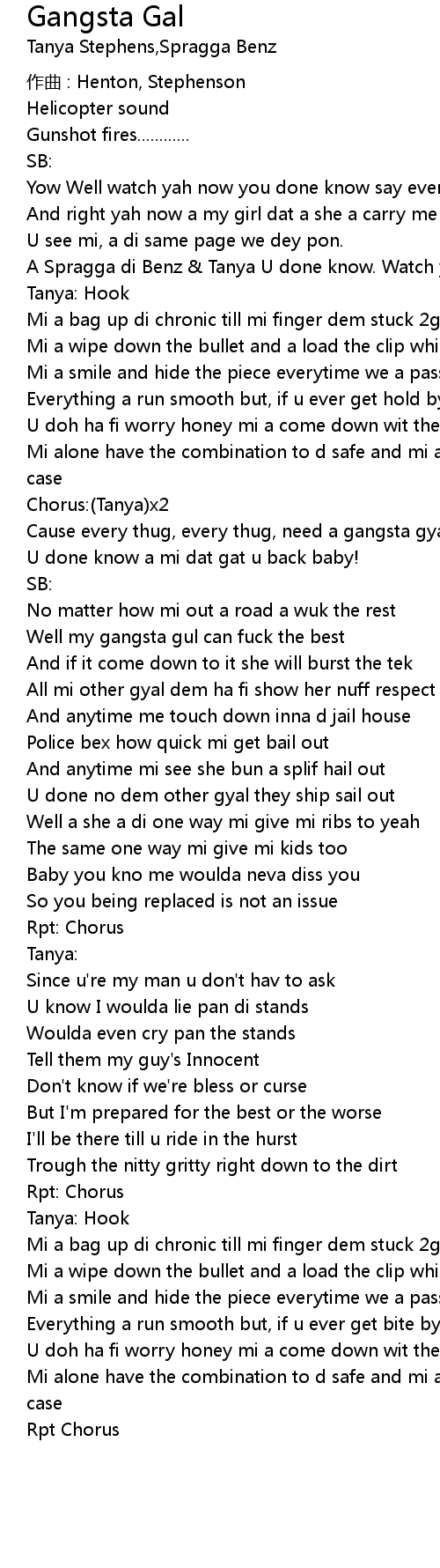 | Cause every thug, every thug, need a gangsta gyal fi hug | |