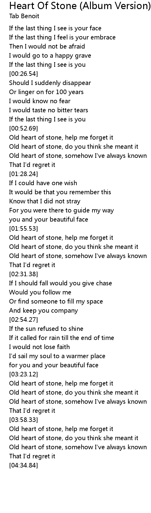 Old heart of stone, help me forget it |