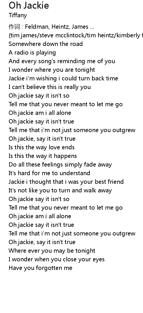 | Oh jackie say it isn' t so | |