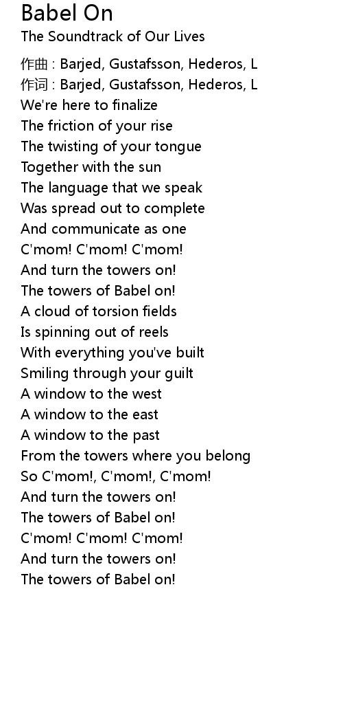 | 作词 : Barjed, Gustafsson, Hederos, L | |