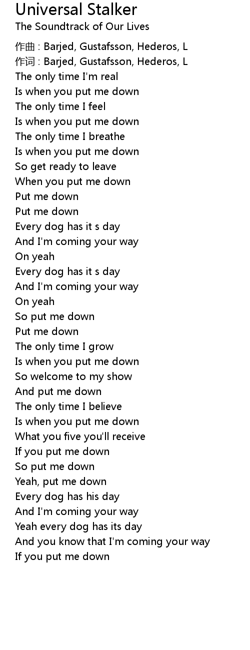 | Is when you put me down | |