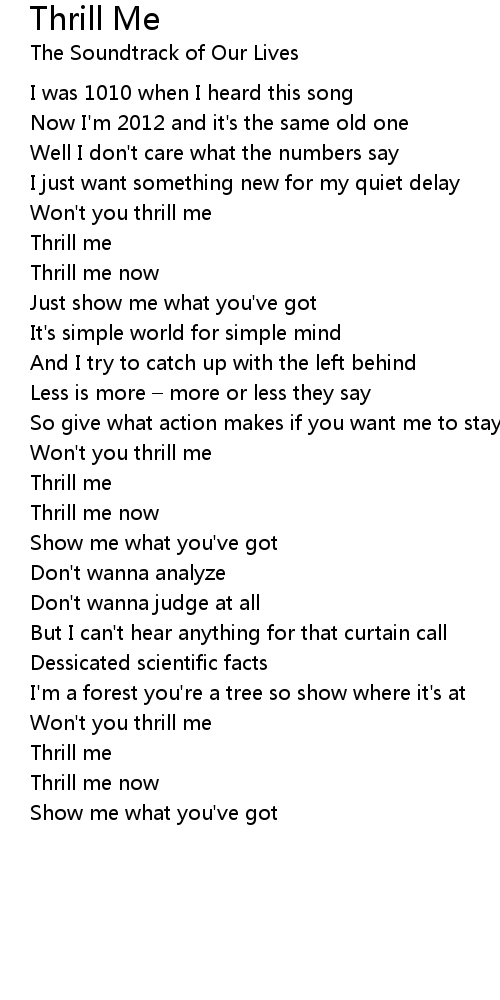 | Won' t you thrill me | |