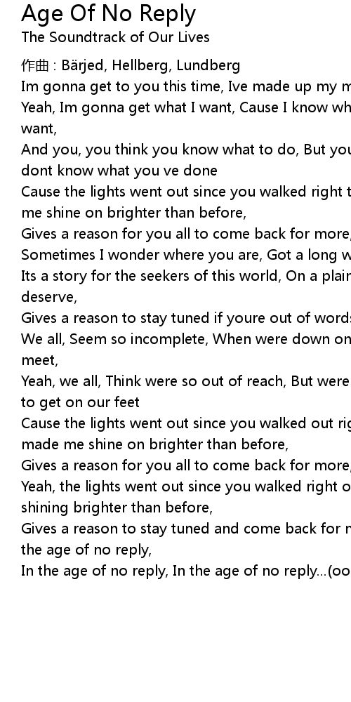 | In the age of no reply, In the age of no reply...(ooohhh) |