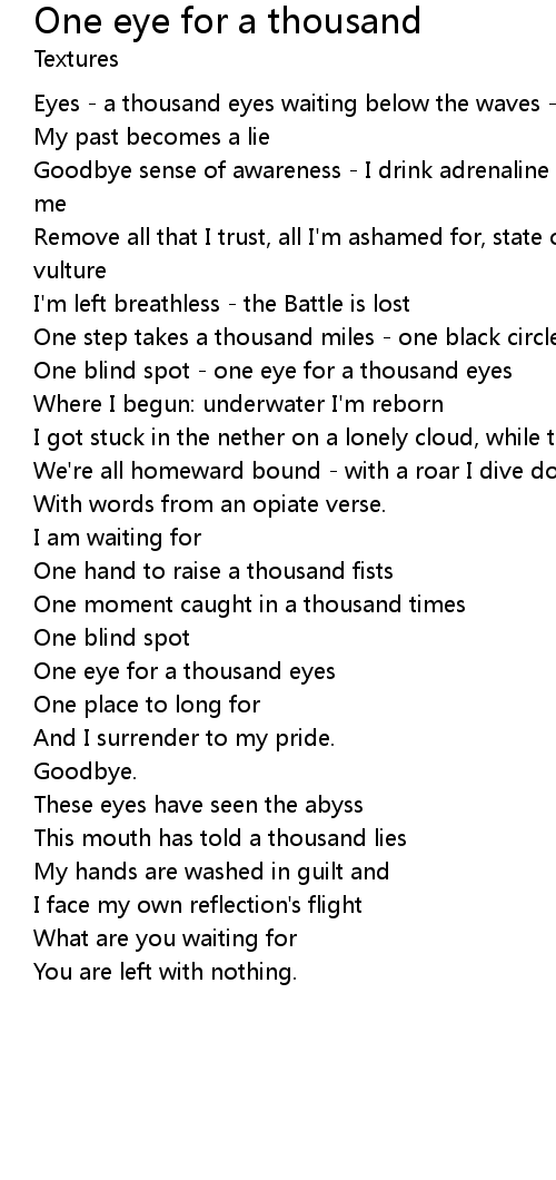 One eye for a thousand eyes |
