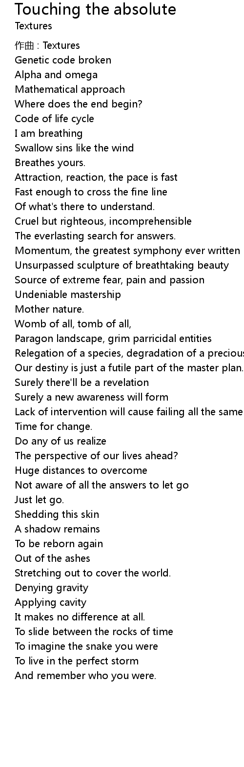 | Song | Touching the absolute |