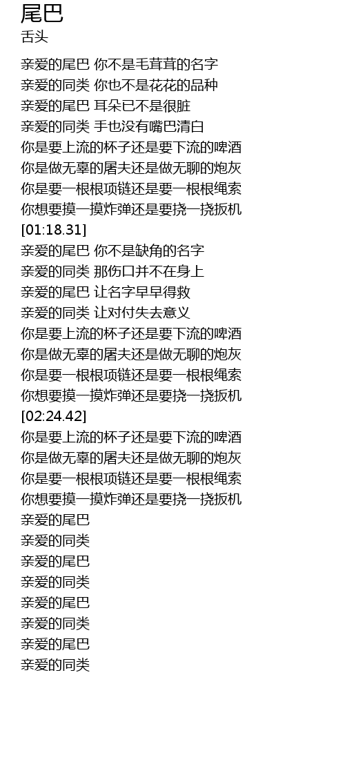| [03:41.19] | 亲爱的尾巴 |