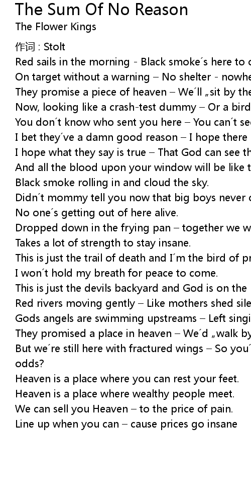 | Song | The Sum Of No Reason |