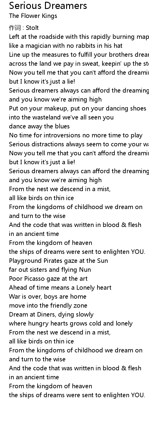 | Now you tell me that you can't afford the dreaming | |