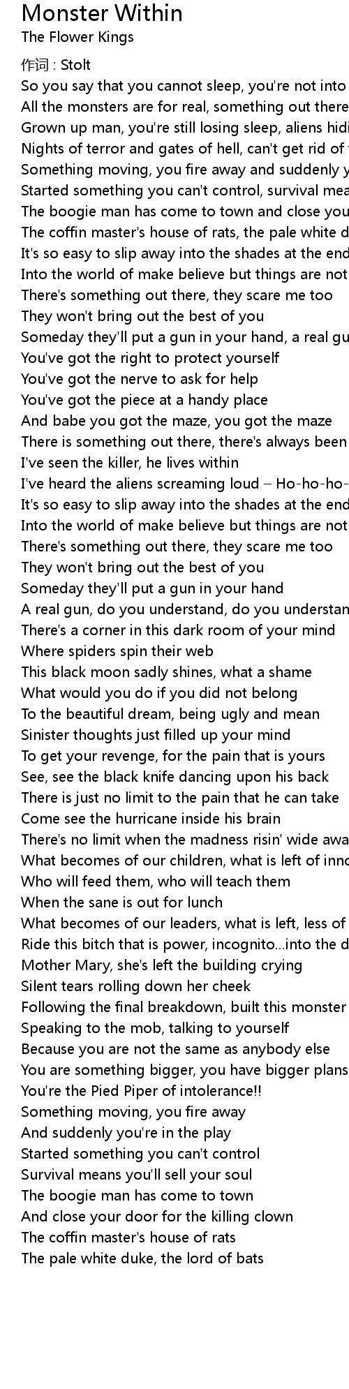 | Grown up man, you' re still losing sleep, aliens hiding in the deep | |