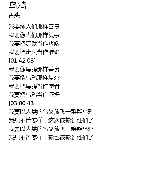 | [04:08.50] | 我要以人类的名义放飞一群群乌鸦 |