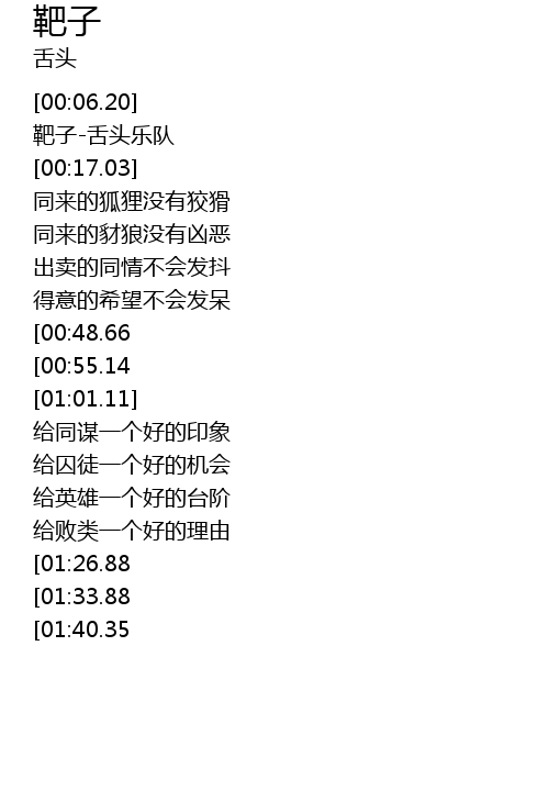 | [00:09.05] | 靶子-舌头乐队 |