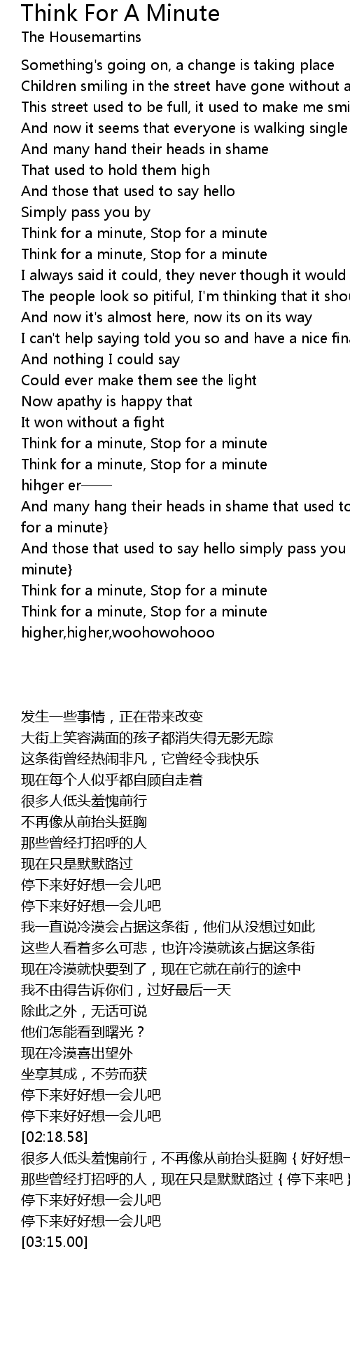 | [03:00.31] | Think for a minute, Stop for a minute |