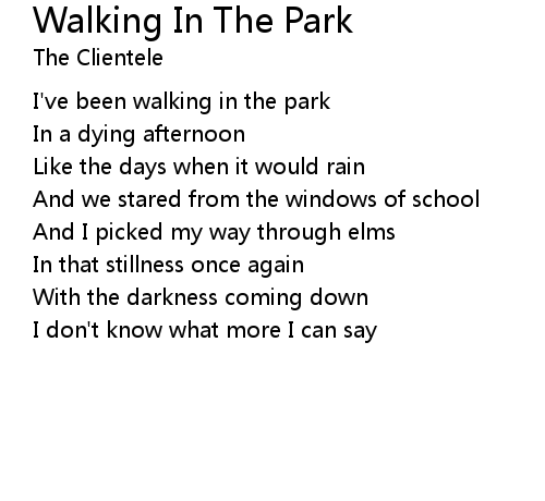 | [00:10.42] | I've been walking in the park |
