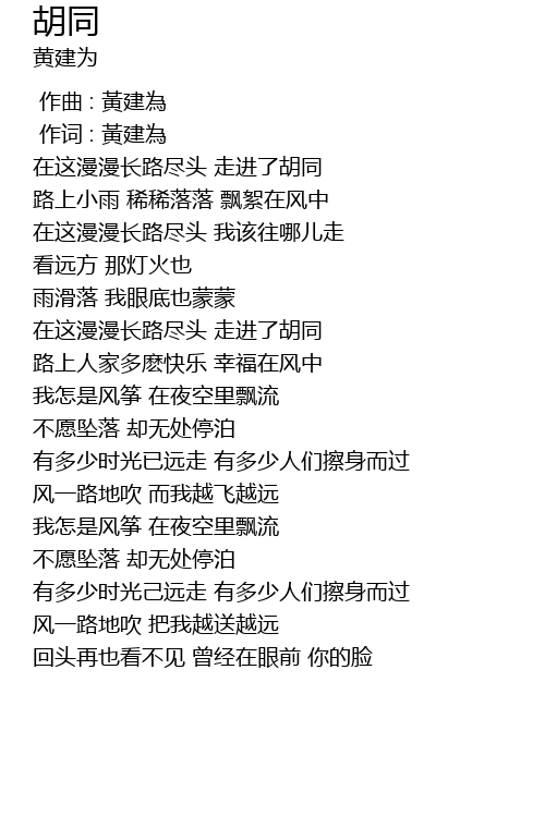 | Song | 胡同 |